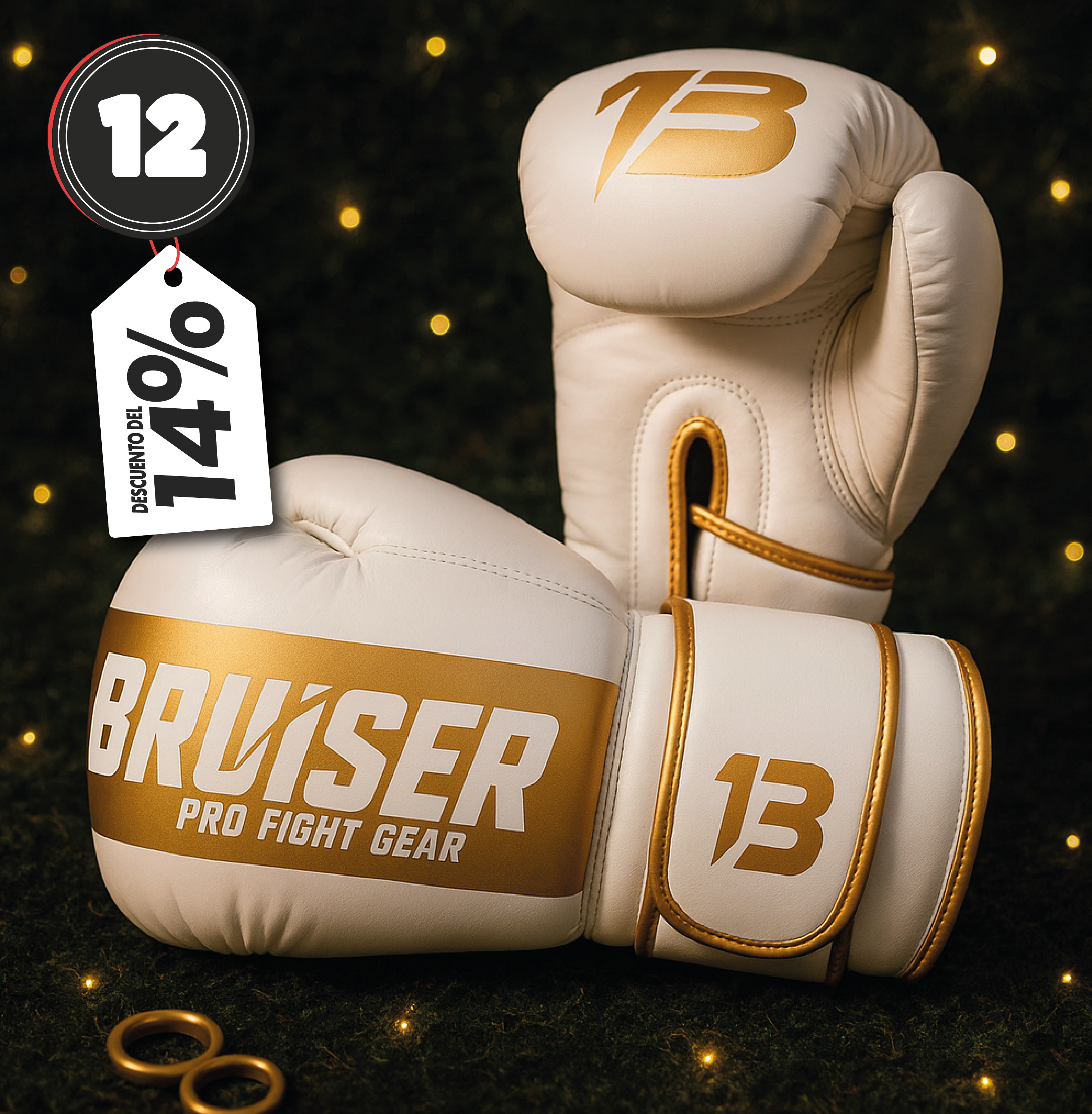 Guantes De Boxeo "Pro Fight " Polipiel Blanco/oro